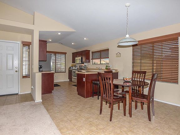 Popular 3 bedroom 2 bath located in Rogers Ranch. Valuted ceilings, plant shelves - open floorplan. The kitchen features dark cabinets, pantry and a breakfast bar. The Master Bedroom with it's vaulted ceiling and walk in closet is split from the other 2 bedrooms. All this located on a great corner lot!