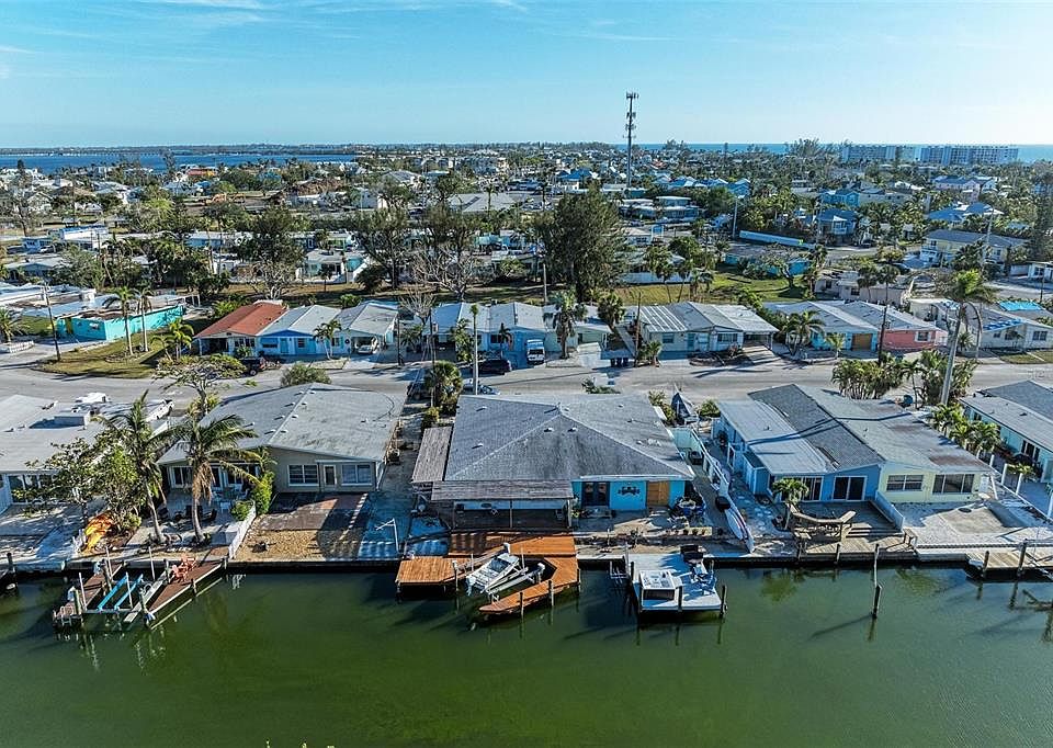 You can own a canalfront home on Anna Maria Island! Seven miles of the most beautiful gulf front beach just a few blocks away. City Park with two dog parks, tennis, basketball, etc. just around the corner. The best restaurants, gift shops, grocery, hardware...everything you need without going off the island! This 2BR/2BA attached villa has 1416 SF under A/C, attached garage and 1,025 SF of dock and deck. It did take on some water from Hurricane Helene (like almost all other ground floor places on the island that have NEVER flooded before). Everything wet has been removed, leaving you with a blank slate to finish as you'd like. This waterfront home has tile floors throughout most of the main living area and halls, carpets were removed in bedrooms. The ROOF was replaced in 2015 and is fine and the A/C is fine. Owner was wise enough to place the A/C condenser on a raised platform and the air handler is located above the ceiling. Renovate to your own taste or build a new elevated home with 2 car garage underneath. Owner would consider putting drywall back in if someone wishes to remain on one level. Permits for rebuilding on ground level need to be in by April 9, 2025 per Holmes Beach Building Dept or you will be required to elevate. Boat lift was rebuilt with new switches and aluminum frame, and was rewired before storms. It needs 2 motors (approx. $200/ea. he thinks). There is a public boat ramp at the end of the street. A wonderful opportunity to live on the water on Anna Maria Island! Also a great vacation rental (weekly rentals allow). Much of the rebuilding in Seaside Gardens will be entirely updated - creating a more valuable neighborhood! Even Pet Friendly (no size restriction)! You can even add a pool if desired. This is a must see!