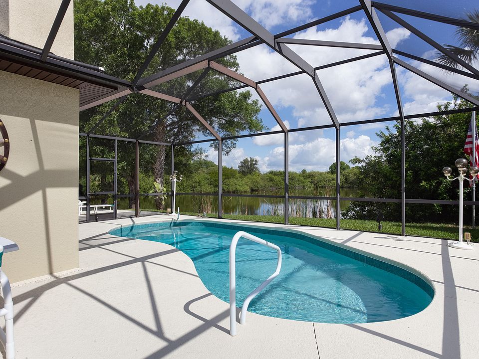 Hidden gem featuring a tropical, screened pool lanai with water and nature views, yet in close proximity to all area businesses, shopping dining, area beaches and more ! Seller says it's time to go, so priced to sell. 4 bedroom concrete block home solidly built in 2010 in a quiet friendly neighborhood. Views of pool and water from kitchen and living area. Split bedroom floor plan, higher ceilings and much more to appreciate here. Shown by appointment.