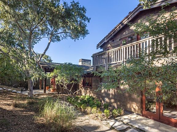 Located in Pacific Grove's desirable Candy Cane Lane and set back from the street, this craftsman style home exudes quality throughout. The high caliber construction is evident immediately upon entering the home. The open floor plan enjoys high ceilings and a wall of windows overlooks the tranquil and private deck complete with an outdoor shower and hot tub. The living area features a beautiful stone fireplace surrounded by built-in shelves. The kitchen has sleek black granite countertops and high-end stainless steel appliances. Downstairs there are also two spacious guest bedrooms, two bathrooms and a laundry room. The primary guest suite and sitting room are found upstair and there is a peak of the Bay from the deck off the spacious bedroom. There is also a detached garage with access from the back alley. This is an understated rare find in America's last hometown.
