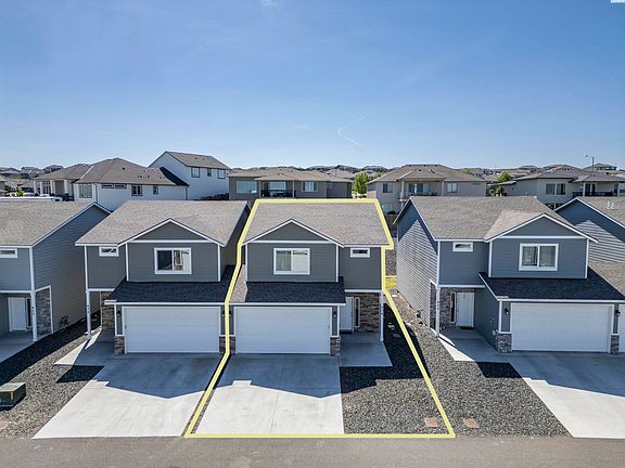MLS# 283957 Welcome to this contemporary 2-story townhome nestled in West Richland's sought-after Eagle Pointe neighborhood. Constructed in 2020, this stylish residence boasts 1815 sq ft of living space, featuring 3 bedrooms and 2.5 bathrooms for comfortable living. Upon entering, you will be greeted by an inviting open floor plan adorned with laminate flooring, abundant natural light, and upgraded window treatments throughout. The well-appointed kitchen showcases a spacious island, quartz countertops, a tiled backsplash, and a spacious pantry for storage needs. You will be happy to know the refrigerator, washer & dryer and tankless hot water heater come included. Adjacent to the kitchen is a charming dining area with a sliding door opening to the outdoor patio, perfect for indoor-outdoor dining experiences. Venture upstairs to discover 3 generously sized bedrooms, including a primary bedroom offering a private bathroom with a dual sink vanity, a shower, and a spacious closet ideal for organizing personal belongings. Step outside to the serene fenced backyard, a lovely space to unwind and enjoy the outdoors. Additionally, the home features an attached 2-car garage, providing ample storage space for your convenience. This fantastic townhome is ideally situated near excellent West Richland amenities, Red Mountain, and offers easy access to Van Giesen for Hanford commuters, ensuring a convenient and enjoyable lifestyle. Discover the perfect blend of modern comforts and a desirable location in this exceptional West Richland residence.