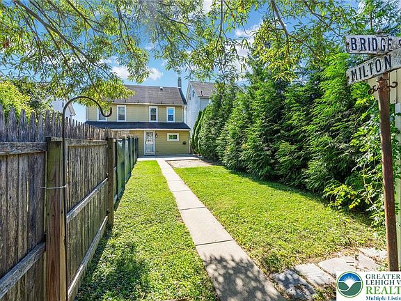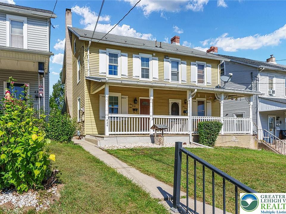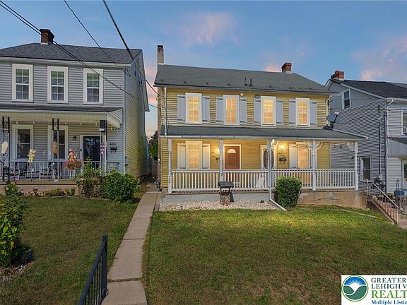 Gorgeous Updated 3 Bed 1 Bath Twin Home in Beautiful Catasauqua just 1 block from the park. Home is on a quiet street with nice covered front porch. 1st floor offers nice size living room and formal dining room with ceiling fans and custom kitchen boasting updated white cabinets, granite counters, awesome backsplash, large pantry and porcelain tile throughout 1st floor. 2nd floor offers 2 bedrooms 1 bathroom all updated. Head up to the 3rd floor thru the primary bedroom could be family room office another bedroom or storage. Home has full basement with washer and dryer super efficient gas furnace, water heater and stove. The back yard is fenced in with storage shed and driveway for up to 4 vehicles. Owner is licensed realtor