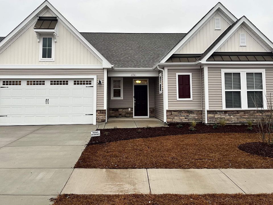 The Seashore floor plan is located in Seaglass Village of Bridgewater! The spacious, single level home features coastal inspired architectural accents, outdoor living area and an extended garage. A covered front porch welcomes you home to a large, inviting foyer. Split bedroom plans offers plenty of privacy for owners and guests. This unique Seashore model has an open floor plan from the kitchen, breakfast area, great room and dedicated study. The kitchen in this home offers painted linen cabinets, a gas range and a large center island with sink. Bridgewater is a natural gas community! This Seashore has a gas furnace and gas tankless water heater. The Master Bedroom has a trey ceiling with crown molding and 2 large walk in closets. Dedicated laundry room is very spacious. Master bathroom features a 5 ft walk in shower, dual vanity, water closet with comfort height commode and large linen closet for storage. Enjoy the Carolina Sea Breeze out on the covered rear porch. This home is a must see on an oversized lot in Bridgewater! Schedule your appointment today. ***PHOTOS ARE FROM ANOTHER HOME***