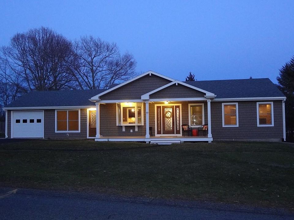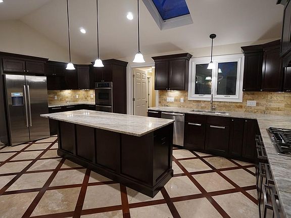 Custom remodeled Contemporary Ranch home with 4 Beds. 3 ½ baths. Not often does a house of this quality & features come on the market at this price. A real cook's DREAM KITCHEN. Impressive gourmet kitchen, granite countertops & large kitchen island. Espresso cabinetry, Bosch SS appliances, one of a kind Travertine & wood flooring makes a noteable statement. Master Suite includes stack stone gas fireplace, tray ceiling, custom his & hers closets. SPA Master Bath, that you won't want to leave, radiant floor heating, towel warmer, whirlpool jetted tub, private water closet, double vanity w/quartz countertops. Huge walk in tiled shower, multi direction adjustable rain heads, large quartz bench. Other features include, home office w/French doors, custom crown moldings, Brazilian redwood flooring. Basement is finished, separate entrance, perfect in-law or nanny suite or a fabulous family room. Hydro air heating system & AC. 2 garages, heated workshop, mudroom. Cedar impression vinyl siding.
