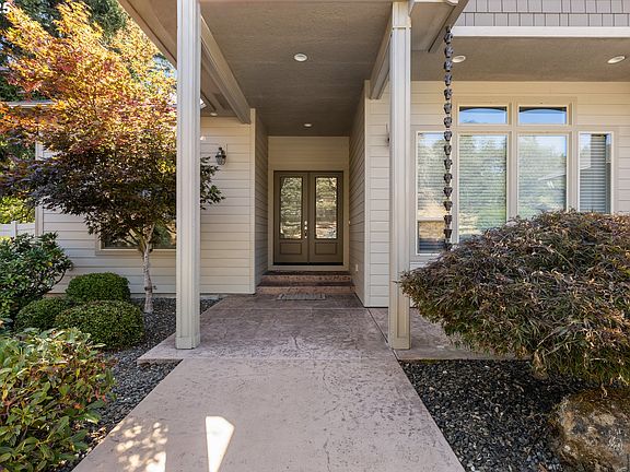 First time on the market! Don't miss your opportunity to tour this immaculate Champagne Creek home in person! This single-level home offers the perfect blend of luxury, comfort, and functionality, set within one of Roseburg’s most desirable gated communities. Step inside to a light-filled, open-concept floor plan featuring hardwood floors, custom millwork, high ceilings, skylights and expansive windows that frame serene surrounding views. The gourmet kitchen features granite counters, stainless steel appliances, a built-in wall oven and microwave combo, custom cabinetry, a large walk-in pantry, and a spacious breakfast nook that's the perfect spot to enjoy morning coffee and the beutiful view. A formal dining room with oversized windows is perfect for hosting gatherings. The primary suite is a private retreat with a spa-inspired bath, dual vanities, soaking tub, and generous walk-in closet space. Two additional bedrooms offer flexibility for guests or a home office. Enjoy year-round outdoor living on the expansive covered deck overlooking the beautiful landscaping and walking path to the creek just beyond the fully fenced backyard. The attached 3-car garage provides over 1,000 sq/ft of parking and storage, while the finished shop offers floorspace for all the other toys and a full second level bonus room. Located just minutes from shopping, dining, golf, and everything else the Umpqua Valley has to offer, this is Pacific Northwest living at its best! Don’t miss this rare opportunity, schedule your private tour today!