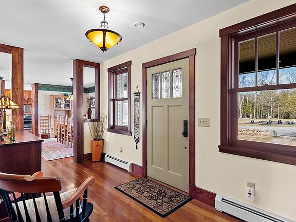 Craftsmanship throughout this state-of-the art Energy Star rated home on 17 acres with views, rolling pasture, perennial gardens, forest, small pond, screened porch, and patio...3 bedrooms, 3 bathrooms, 2 car attached garage, primary suite with private bath on first floor, 2 bedrooms on second floor, office, craft room, Tulikivi fireplace, 5/4 cabinet faces, extra tall baseboards, exquisite woodwork, honed granite counters in kitchen, mudroom with 2 closets and bath, air to air exchanger, finished lower level with radiant heat, first floor laundry, air conditioning on first floor, 28x48 detached garage with 2 overhead doors and walk up attic, and back up generator!