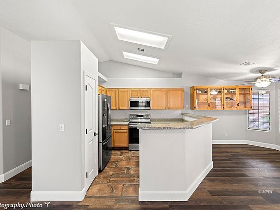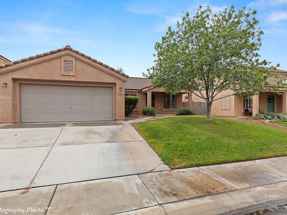 Welcome home to this well kept, very nice home in the quiet gated community of Copper Bluffs. The open floor plan features two bedrooms plus a den/office, two baths, and a large great room convenient to the kitchen and dining room. New Anderson sliding doors from both the great room and main bedroom allow access to the tastefully done backyard, with its large covered patio, water feature, and electric sun shades. Pre-wired for spa or hot tub. As part of Mesquite Vistas, homeowners are entitled to use of the pool and hot tub, and tennis, basketball, pickle ball and volleyball courts at the M.V. Fitness Center. Front yards are maintained by the HOA in this clean, quiet neighborhood. This home represents a good value in today's Mesquite real estate market.