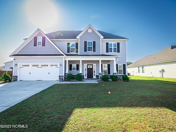 Welcome to your coastal oasis in Snead's Ferry, NC! This charming two-story, 4-bedroom, 2.5-bathroom home offers the perfect blend of comfort and convenience. The master suite is a true retreat, featuring a spacious bedroom with a trey ceiling, a luxurious master bathroom with elegant tile flooring and surrounds, and an oversized soaking tub for ultimate relaxation. In all bathrooms, you'll find exquisite, brushed nickel fixtures that add a touch of refinement to every space. The master suite also boasts a generous walk-in closet, providing ample space for your wardrobe. The home also offers a modern, open kitchen with stainless steel appliances, a breakfast bar, and an inviting living room, creating a warm and welcoming atmosphere, perfect for both entertaining and relaxation. In addition, a large two-car garage with built-in expansive storage shelving is a fantastic addition for organizing and maintaining your belongings. Outside, you'll appreciate the low-maintenance fenced-in backyard, making outdoor living a breeze. The covered patio with a ceiling fan provides an excellent space for relaxation and entertainment. The large covered front porch is perfect for sipping your morning coffee or chatting with neighbors. For outdoor enthusiasts and those who love serene views, this property is conveniently located within walking distance of a community pond. It's a tranquil spot for relaxation and outdoor activities. Located in close proximity to Intracoastal boat launches, beautiful beaches, and Stone Bay, this property provides the perfect combination of comfort and coastal convenience. Don't miss out on this fantastic opportunity to make Snead's Ferry your new home, where luxury, practicality, and coastal charm come together seamlessly. Contact us today to schedule a viewing and make this coastal retreat, with its stunning master suite, modern kitchen, spacious garage, and outdoor amenities, yours!