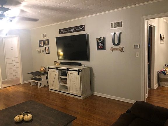 This nicely updated 3 bedroom 1 bath home in great neighborhood is move in ready. Large bedrooms with built ins for maximum storage. Eat-in kitchen is spacious with gas range and huge pantry. Large living area and formal dining with sliding doors to huge privacy fenced backyard. 2 car garage with plenty of storage and storm shelter. Enjoy lazy fall days from your front porch on this tree lined street.