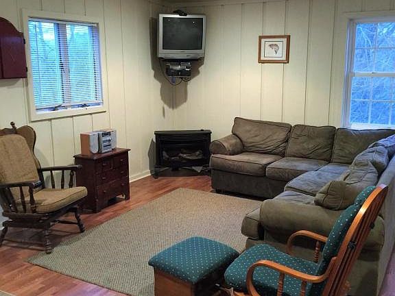Furnished Ranch Home in Kingwood Lake offering 2 Bedrooms, 1 Full Bath with separate Laundry Room=1128 Sq Ft. This move in ready cabin has Open floor plan sharing the kitchen, dining area and living room. There is a propane free standing stove for chilly days and a mounted TV to watch movies & relax! There are 2 bedroooms off the hallway with a rear exit door. Nice Full Bath with tub&shower&separate Laundry Room! A nice get away with a separate parking pad on upper level with a few stairs leading to the house. Gather around the firepit with smores & hot chocolate, kick back, soak in the view of nature. Grab the gang, your fishing poles, picnic basket, head to the lake, enjoy lunch and family togethering time under Pavillion next to LAKE! Own a piece of Pocono Mountains Real Estate!
