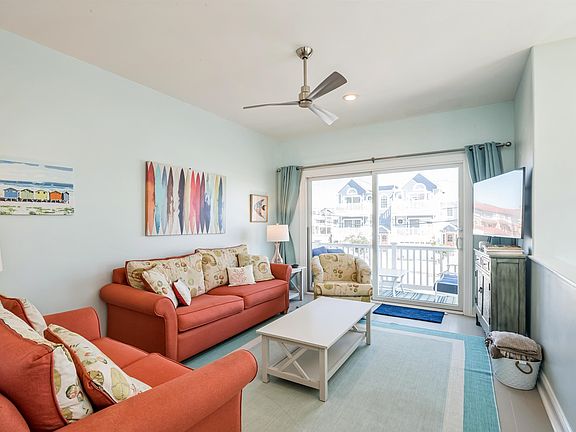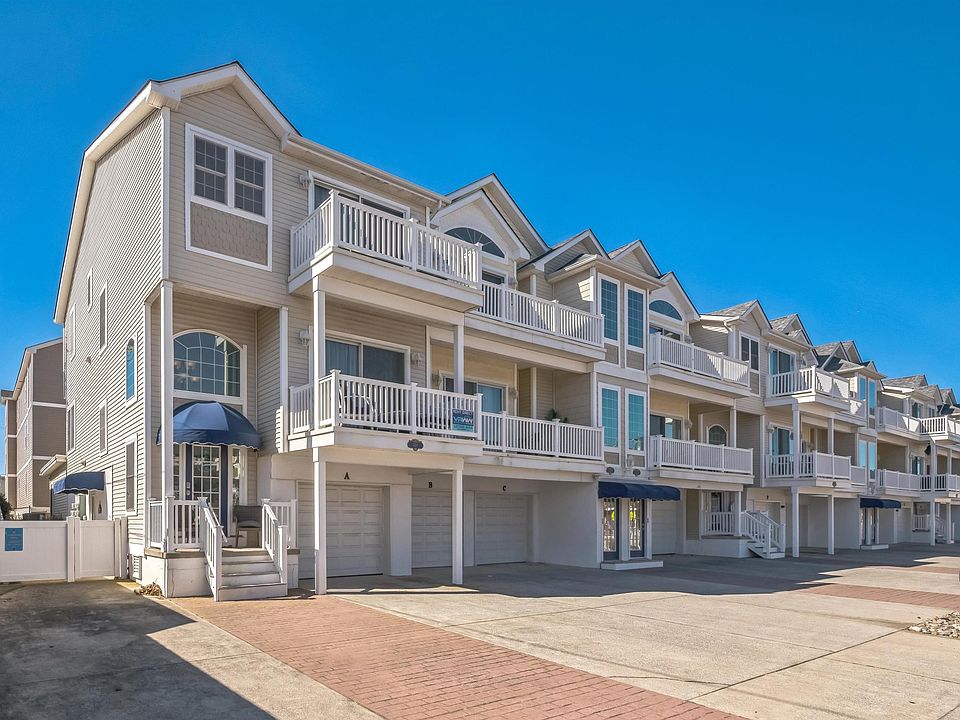 Your ideal getaway just steps from the sights and sounds of the beach and boardwalk, a stunning three-story end-unit townhouse that blends relaxation with investment potential. This is not just a place to stay—its where unforgettable memories are made. Whether it is waking up to the sound of the ocean in one of four spacious bedrooms, enjoying coffee on a private balcony, or gathering with loved ones in sun-filled spaces, this home has it all. As you step inside the 2-story foyer, natural light floods the open, welcoming space. The first floor offers a private in-law suite with its own entrance, cozy sitting area, full bath, and a breakfast nook with table & chairs and a second full size refrigerator-- perfect for extended family—or keep this suite for yourself and rent out the rest of the home. The HOA allows both long- and short-term rentals, offering flexibility and great income potential. The second floor is the heart of the home. Here, the beautifully updated kitchen boasts stunning beachy countertops, stainless steel appliances, pendent lighting, and a large island with additional seating for gathering. The open concept design flows seamlessly into the dining and living areas, where a balcony offers peaceful views of the boardwalk—perfect for catching those ocean breezes in the evenings. The third floor offers a luxurious sun-filled primary suite, complete with a cathedral ceiling, private balcony, and stunning ocean views. This personal retreat includes two walk-in closets--1 with a keypad lock for secure storage and an ensuite bath featuring a jetted tub for ultimate relaxation. Two additional spacious, carpeted bedrooms offer queen bed or bunk beds, along with large closets, making them perfect for family or guests. A conveniently located laundry/utility closet ensures that all your vacation essentials are within easy reach. Outside, the privacy-fenced side yard features a patio and outdoor shower, ideal for summer barbecues and rinsing off after a day on the beach. Parking is a breeze with a two-car garage and additional space for two more cars on the parking pad. This home has a strong rental history and is fully updated with new memory foam beds, sectional sofas, linens, multi-zone air conditioning, and more. It is the perfect blend of style, function, and investment potential. Do not miss out on this incredible opportunity to make it your own.