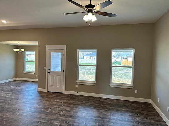 New 3 car garage split bedroom plan home with vinyl plank flooring in the kitchen and living areas, large kitchen island, granite countertops, walk-in pantry, raised ceilings, covered patio with a great view and landscaping. More new homes available in this subdivision.