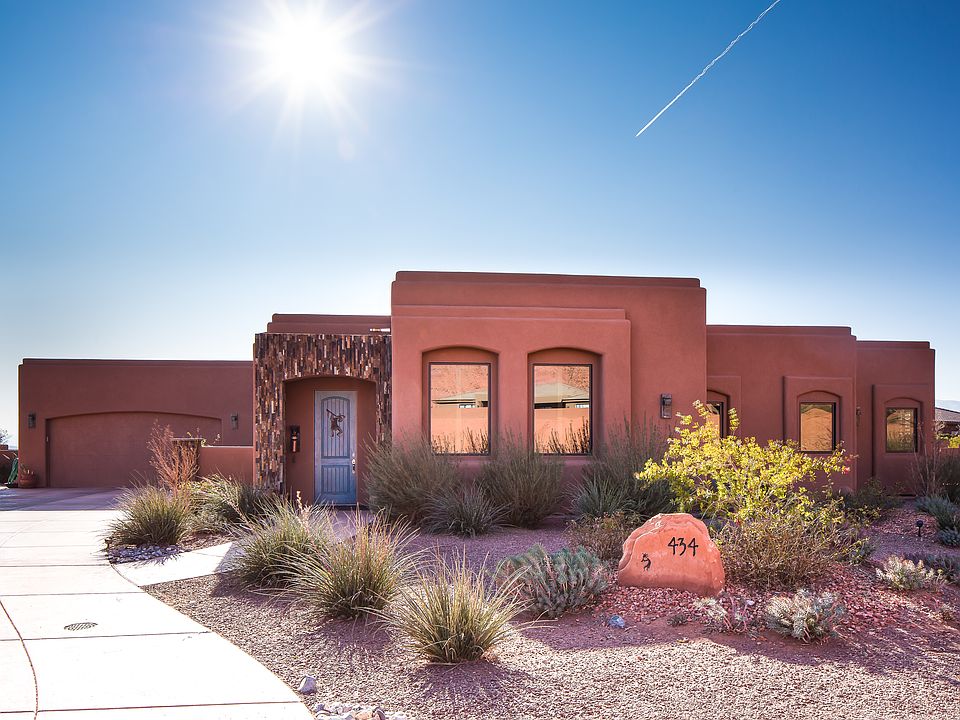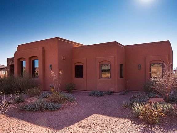 With it's masterful design & superior quality craftsmanship, the graceful & symmetrical lines of this iconic pueblo revival style home, will take your breath away. Spacious living w/ an open concept design boasts a true chef's kitchen you must see to appreciate. Enjoy 993 sqft finished garage w/ attached work shop. Silhouetted against the vast open skies, nestled among the enchanting Snow Canyon