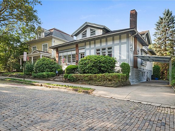 This charming English Tudor exudes elegance throughout with stunning original woodwork mixed with modern updates! The first floor features original hardwood flooring, beamed ceilings, large LR with decorative fireplace flanked by built-in shelving with glass doors, and large DR with built-in window seat and shelving with glass doors. You will be DELIGHTED to find 2 adorable four-season rooms with rich wood paneling and custom tile floors that offer beautiful views of nature all year round, as well as 2 BRs and a full bath! The kitchen features custom tile flooring, granite countertops, tile backsplash, soft-close cabinets, and slate appliances. On the second floor you will find 3 more large BRs plus another full bath. The basement has a convenient half bath and also accesses the gorgeous, multi-level backyard. This wonderful home is located minutes from 376, is within easy access to downtown, and close to universities and main Pittsburgh attractions. Simply move right in and enjoy!