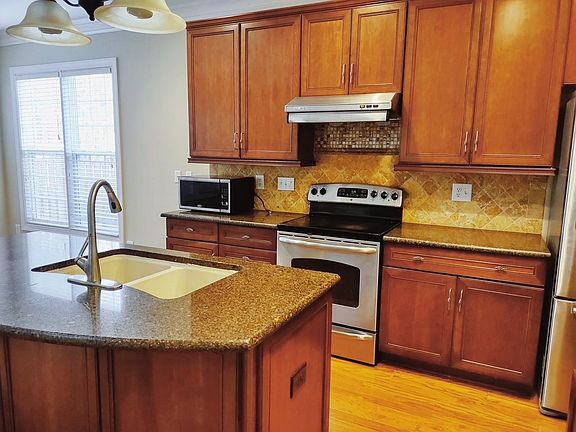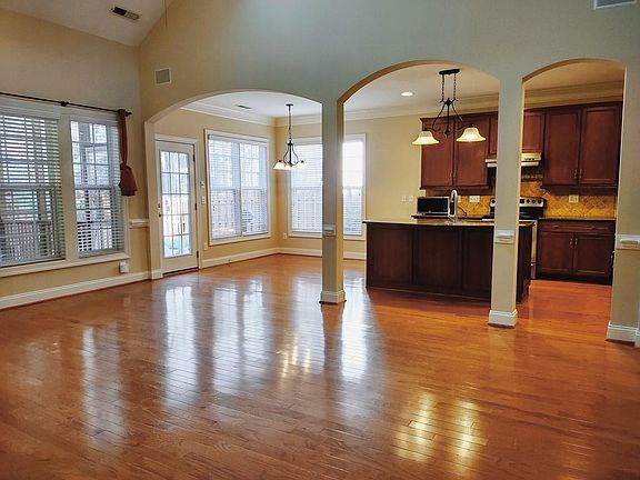 Beautiful, open concept floor plan in the desirable Greystone neighborhood. 3beds plus a huge bonus room. Great kitchen with quartz countertops, under-cab lites, tile back splash, stainless steel appliances, island & 42" cherry cabinets. Hardwood floors entire 1st floor. Cathedral ceilings in Family room with skylights, overlook from 2nd floor, ceiling fan, angled fireplace with gas logs & marble surround. 1st floor Master bedroom w/bayed sitting area. Screened porch and patio. private lot. Walking distance to shopping center. East access to 540 and 10mins to RTP. Move in Ready! No smoking allowed, Pets with limited size and number.