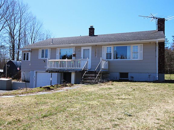 Cute & cozy three bedroom one full bathroom ranch located on 3.1 acres in Monson. This home offers an enclosed sun porch, updated eat in kitchen with pellet stove, front living room with natural light and hardwood floors, three bedrooms and a full bath all on the first floor. Downstairs you'll find a family room with a beautiful wood fireplace, washer & dryer and a one car garage. Oversized two car detached garage with workshop or add another overhead door to make it a three car. To the back of the property you'll find a 24 x 22 out building for storing all your toys. The backyard is adorned by lots of fruit tree's and berry bushes.