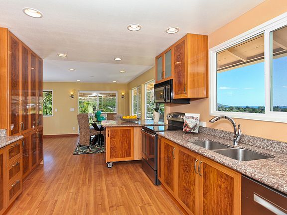 This private, single-level, ocean-view 4-bedroom 3-bathroom, single-family home is conveniently located in Aina Haina. 2426 square feet total living space and 7500 square feet total land in the property. This house is renovated, super clean, vacant, and move-in by mid-end of July! Custom open kitchen with stainless steel appliances and granite countertop. Redesigned bathrooms, lam wood floors, Pella windows, recessed lighting throughout, separate dining area, two large living rooms, a huge lanai and a backyard with a mature mango tree. Entertain in style or simply relax on deck and enjoy the lovely ocean and mountain breeze. Excellent turn-key condition. Two covered parking spaces in the detached carport (400 square feet) and a private driveway. Walking distance to Aina Haina Elementary School, Foodland, restaurants, and shopping center. Tenant is responsible for cable/internet, water/sewage, electricity, and pest control. Landlord pays for monthly yard service. This house is high-speed internet ready, and EV charging station ready. This house has a range, oven, microwave, refrigerator, dishwasher, washer/dryer, split AC in all rooms, ceiling fans, and garbage disposal.