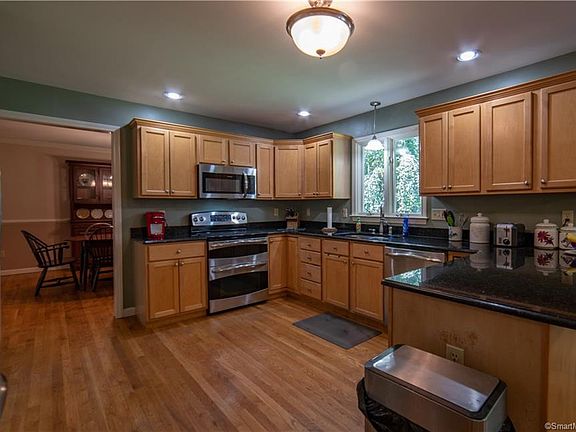 MOVE RIGHT IN AND RELAX Home is in excellent condition, and has just been freshly painted and new carpeting on the second floor was just installed. You'll walk in to a lovely two story foyer with the office on the right for a private setting. You'll love this large kitchen with granite counters and stainless appliances. There is a desk area and a nice pantry. The family room is very spacious with hardwood flooring, a fireplace and a fireplace insert to help with the heating costs. Sliders off the family room lead to the back yard which is level and surrounded by mature trees and plantings. The Formal Dining Room and Living Room have hardwood floors and nice crown molding and chair railing. Not all master bedrooms are the same and this home has a beautiful master bedroom suite with a cathedral ceiling, sliders leading to a small balcony, his and her closet and a generous size bathroom featuring dual sinks, separate shower and relaxing jacuzzi tub. Home has a wireless heating system and The Nest is installed on the exterior. Home is conveniently located in a neighborhood with easy access to highway, schools, shopping areas and many conveniences. Enjoy the town of Southbury and its excellent school system, public and private recreational facilities, close to wine trail and breweries and many hiking trails, parks and excellent restaurants. An hour and 20 minute commute to NYC, 1 hour to Hartford and only 45 minutes to the beach A wonderful place to make your home.
