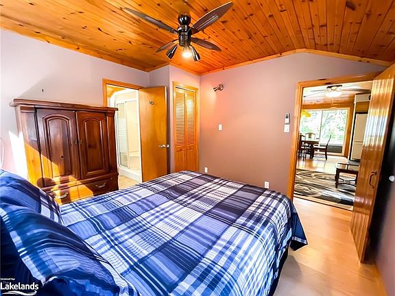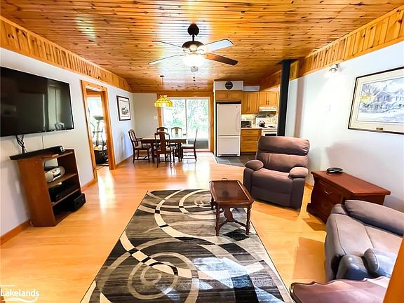 Just a gem! Very clean and orderly. House contents right down to dishes and cutlery included, making it easy for you to move in and enjoy. 200 amp service. Napoleon fireplace in living, dining area. Ample size primary bedroom with 3 piece ensuite. Second bathroom also a 3 piece with full size Whirlpool washer and dryer. If 3 bedrooms aren???t needed turn one into a den or office or exercise room. Double patio doors to large deck facing backyard, very private and with covered bbq area or a great spot for a hot tub as there is electricity already installed. Oversized double garage situated behind house is perfect for a convertible, boat, snowmobiles???. All outbuildings and covered bbq/hot tub area, deck with electricity. Another workshop/garage with attached storage building is 450 sq ft. and provides plenty of additional space for tools, tinkering and seasonal lawn, driveway maintenance equipment. The aerial photographs show just how close you are to the water for a refreshing dip and the opportunity to cast and catch dinner. Just a short drive to Wiarton for shopping and convenience items and equal distance to Sauble Beach for summer fun, 4 season adventure and entertainment. With a large lot, mature trees, water nearby all that is missing from this perfect picture is YOU! 2022-10-19