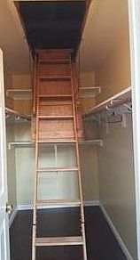 STUDIO APT. NICE UNIT W/15FT. CEILINGS. CUSTOM BUILT LIBRARY STYLE WOOD WALL UNIT WITH ROLLING LADDER. TONS OF STORAGE(ATTIC) WITH A FEW CLOSETS.