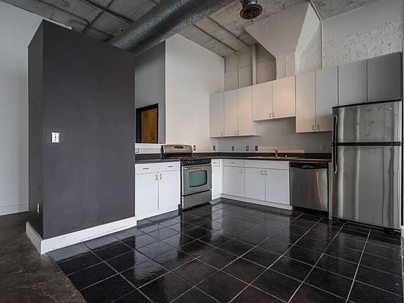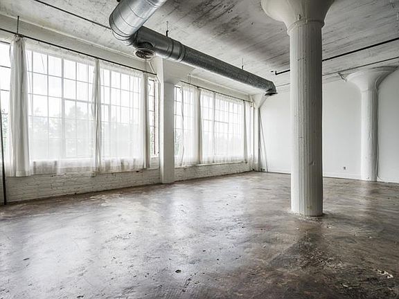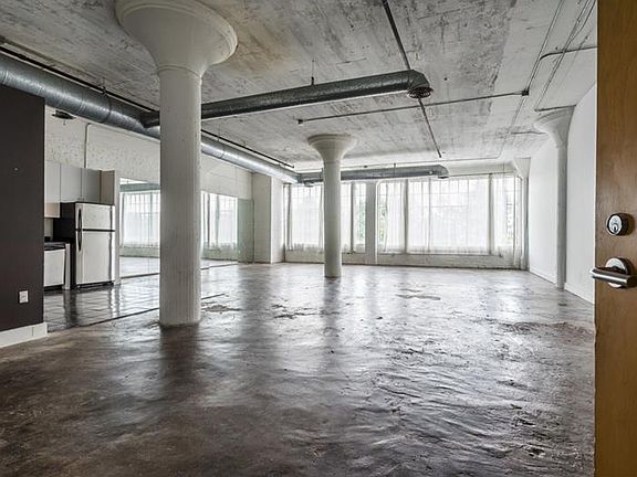 True loft with a living room that is the size of most two bedrooms, dramatic high-ceilings with grand stone columns and concrete floors. Their is a roof top deck with grand skyline/city views. Comes with one assigned parking space and extra storage unit.