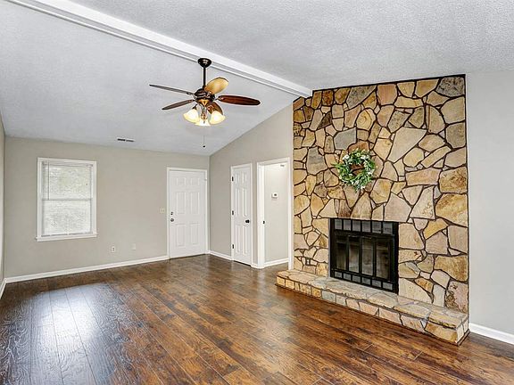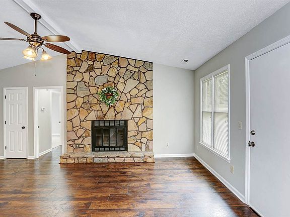 Updated 3 bed, 2 bath brick rancher New floors, fixtures and paint throughout Living/dining room with laminate wood floors, vaulted ceiling and fireplace Eat-in kitchen offers new granite countertops, tile backsplash and a pantry Spacious master with walk-in closet and private bath Huge bonus room Covered back patio 2 car detached garage Short drive to new restaurants and shopping