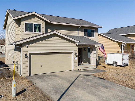 Perfect downtown location in Palmer close to walking and biking trails. Large open floorpan with spacious kitchen, and two living spaces. All bedrooms are on the upper level with large primary suite and laundry room. Huge, fully fenced in backyard!