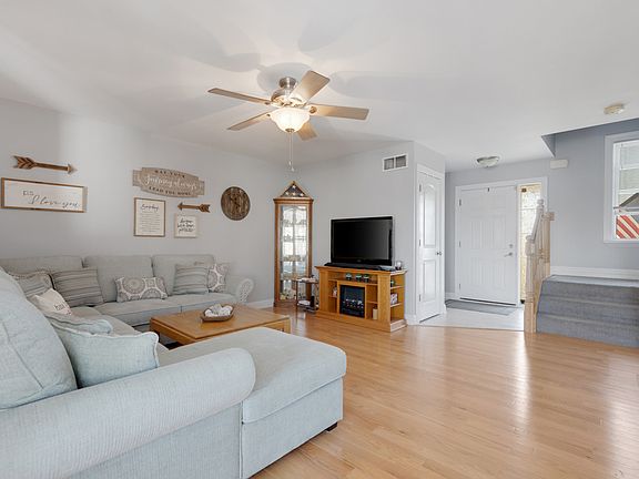 Lovely, move-in ready and well maintained! Three bedroom, two full bathroom END UNIT townhome in highly desired Coventry Townhomes. Corner building with no through traffic and great nature views. Private, beautifully landscaped entrance. On trend grey paint colors with white trim, doors and wainscoting. Hardwood floors on main level and new carpet on second and lower level. You are sure to love the bright and open floor plan perfect for entertaining. Eat in kitchen with slider opens to deck. In unit, second floor laundry room. TWO car attached garage with room for storage and plenty of guest parking! Wired for Medicom cable and has Metronet WholeHome WiFi. NEW AC 2022 Come and take a look!