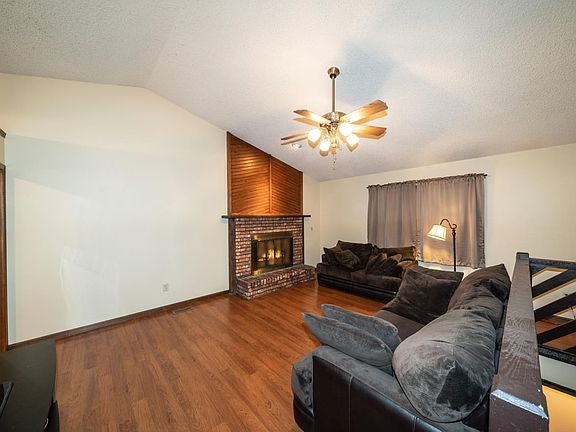 You will love coming home to this charming and move-in ready ranch complete with neutral decor throughout to go with any decorating idea you may have, beautiful hardwood floors, lovely living room with large window, fireplace with brick surround, and vaulted ceiling with ceiling fan, formal dining area with hardwood floors, ceiling fan, chair-rail molding and wainscoting, and sliding glass door to the backyard patio to make your summer barbecues a breeze, and light and bright kitchen with pantry area, hardwood floors, vaulted ceiling, tile backsplash, and all the appliances to remain. Spend peaceful nights in the main floor master suite with carpeting, closet, ceiling fan, and private bathroom with oversized vanity and shower. The finished basement is the perfect space to just hang out and features a large family room and bonus room with closet. Sit back and relax out in your private backyard with patio area and wood fencing!