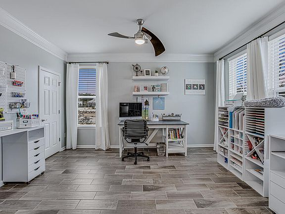 This stunning home features a spacious open floor plan with an amazing curb appeal and loads of upgrades! When you first walk in you will notice the wood grain premium tile throughout the first floor. The kitchen boasts a large island, quartz countertops, stainless steel appliances, and a walk-in pantry. A guest suite is located on the first floor and includes a spacious walk-in closet and a luxurious bathroom. The upstairs features the spa-like primary ensuite with a SPECTACULAR CLOSET ORGANIZER, 3 additional bedrooms, 2 bathrooms and a LARGE LOFT! The backyard is fenced in oasis that includes a screened porch for outdoor dining and a hot tub to relax! Time to come home to your own oasis. *Projector and screen in loft do not convey*