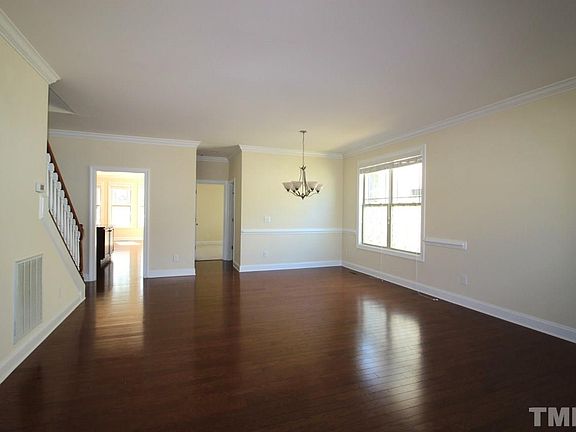 Nice subdivision with perfect school system, perfect floor plan features all formal areas with first floor guest suite, hardwood floor throughout most of the first floor and stairs. Kitchen with granite large island, SS appliances. Luxurious master suite, huge master bath with His/hers custom walk in closets. Huge bonus area on the second floor. Large screen porch, fenced back yard. Enjoy green way walk trail, pool and clubhouse. Great community near 55, RTP, and 540. Convenient shopping & schools.