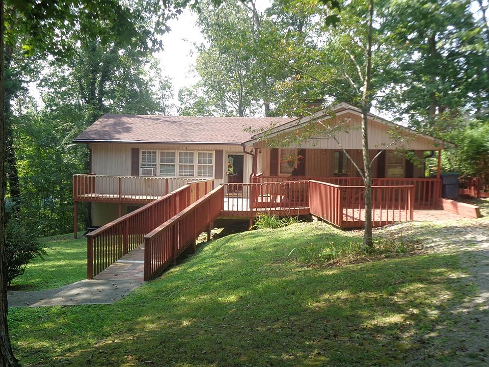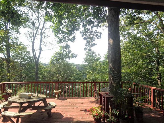 Overlooking Lake Cumberland in Somerset KY is this Open Floor Plan Home with Southern Kentucky Charm. Located approx 1.5 miles from Lee's Ford Marina. Great Room with Lots of Windows Facing Lake and Open Rustic Wood Beams. Home offers extensive decking and porches for all that outside enjoyment and relaxing. Lots of character in this lake home. Home has 3 Bedrooms and 3 Baths with an extra small room that will accommodate at 4th Bed. Dining Room has a Fireplace and joins kitchen and kitchen bar. Master Bedroom has a Fireplace and adjoining pass thru laundry room with closet and master bathroom has shower. Guest Bath has tub. Sunroom is just off Kitchen and adjoins Back porch and Huge Deck Area Facing Lake. Main Level Offers great room, dining room, kitchen sunroom, master bedroom, laundry room 2 baths, and small possible 4th Bedroom/no closet. Lower level has Family Room, 2 bedrooms and bath with shower. Home is Nestled on .67 acre lot with Huge Detached garage offering approx. 720 sf