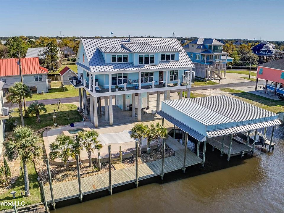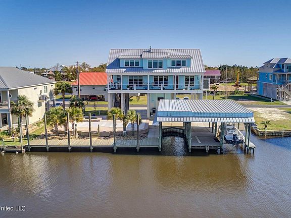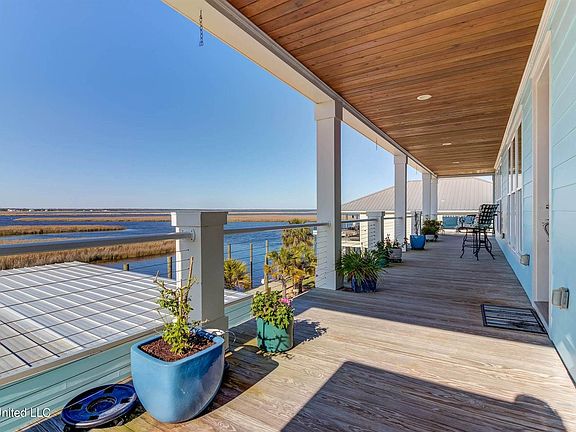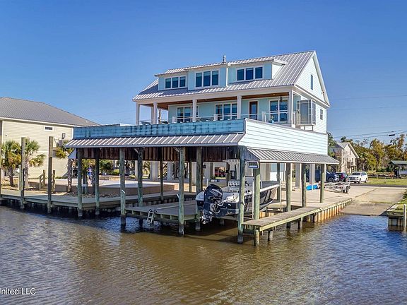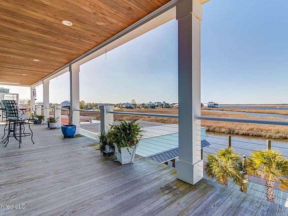 It's all about the waterfront views! This home has breathtaking and unobstructed views from almost every angle - every bedroom has gorgeous picture windows looking out over Cameron Island and the Jourdan River. Heck, even the hot tub has a great view. It's on a double lot with 120ft of water frontage, bulkhead, boat ramp and double boat lift with heavy duty lifts for the bigger boats and shore power and docking piles for the even bigger ones. Inside, everything is built and crafted with the highest end materials - granite, custom cabinets, gourmet gas stove top, ice maker, walk in shower and double vanity in primary bedroom, and three more rooms upstairs with lots and lots of closet space and storage that will be perfect for owners' closets for short term rental or storing everything you need to make this place your family getaway or your forever home. The cargo elevator makes groceries so much easier. The living area is perfect for entertaining and under the house has extra storage and plumbing and is just ideal for crawfish boils and ball games and parties. Take the golf cart to Old Town Bay St Louis and enjoy fine dining and and live music and festivals. You can look another decade and not come across this kind of property with these perfect waterfront views! Call your agent today and be sure to request the Matterport 3D Virtual tour link!