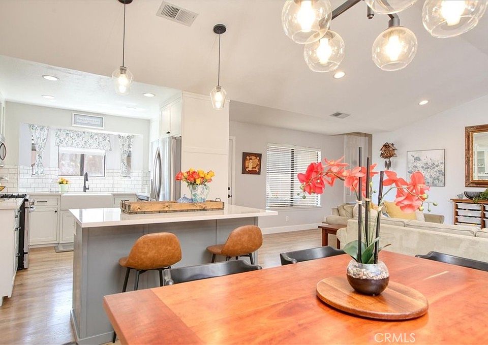Welcome to this beautifully updated, move-in-ready home nestled in one of Arroyo Grande’s most sought-after communities. This 3-bedroom, 2-bath residence features thoughtfully designed living spaces with engineered wood plank flooring throughout. The upgraded kitchen showcases a raised ceiling, recessed lighting, glass-front cabinetry, quartz countertops, a tile backsplash, farmhouse sink, & stainless-steel appliances. A central island, illuminated by elegant pendant lighting, completes the space and makes the room perfect for entertaining or casual dining. The open concept living and dining areas offer vaulted ceilings, abundant natural light, and a cozy fireplace. The primary suite includes mirrored closet doors, a large window, abundant light and a renovated en-suite bath. The primary bathroom finishes include a dual-sink vanity, new tile flooring, and a sleek, glass-enclosed tiled shower. Additional features include built-in hallway cabinetry, a spacious 2-car garage, and beautifully landscaped front and back yards with inviting patio spaces perfect for relaxation or entertaining. Immaculate and ideally located, this home blends timeless charm with modern upgrades...................a true gem.