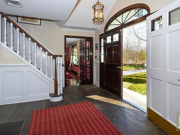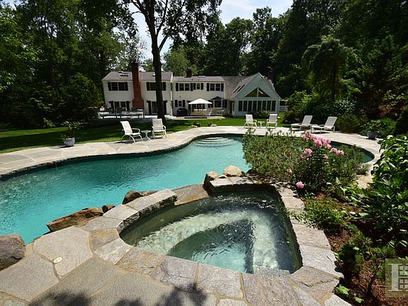 This meticulously maintained expanded 10 room charmer with several lovely additions including a dramatic living room with beautiful fireplace must be seen. Both the added lovely bright sun room and large family room with fireplace, offer French doors to terrace and deck. Enjoy entertaining in the large inviting dining room with fireplace. Master bedrooms on both first or second floors. The cheerful renovated eat in kitchen overlooks an enchanting Shoreline pool with spa and waterfall with beautiful landscaping. 2 car garage, house generator, great closets, easy commute to train or parkway and town. Children and dogs of all ages and sizes on this cul de sac.