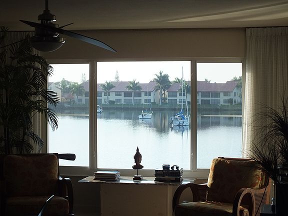 VIEWS, VIEWS, VIEWS This condo has it all. I am offering a completely remodelled 3 bedroom 2 bath condo with a perfect view of the BIMINI BASIN. Very private 2nd floor end unit with views from your 8 x 21ft screened lanai and all main living areas. This is a rare find with over 1700sf of living space under air. It includes an assigned boat slip with a 13k lb boat lift and an 11ft beam, installed 2014. Boating to THE RIVER takes only a few minutes with no bridges perfect for a sail boat owner or sport fish yacht. The kitchen has gorgeous new custom cabinets with granite and stainless appliances including a built in wine fridge. All new neutral color tiles throughout, including the lanai and new carpet in the bedrooms. Lanai has been redone with new lighting and a custom wood ceiling. Master suite is complete with walk in closet, stone in the shower area and a quartz counter. Both the bedroom and bathroom have water views providing plenty of natural light. Second bath has been upgraded as well and includes granite countertop. All bedrooms are large with lots of storage. Large bright laundry room with a window and plenty of storage as well. Remote control roll down storm shutters in the lanai and brand new hurricane impact windows throughout in Dec 2013. A/C unit new in 2009. New tile roof in 2008. New electrical panel installed in Dec 2013. The condo association is very well managed and maintains the complex in excellent condition. It has a heated pool and Tiki hut with barbeque overlooking the basin for those hot relaxing days. Watch the Christmas parade right outside your window. See dolphins play at sunset. A covered parking place is right outside the unit for your car and a storage locker is included. It is a 55+ community with a no pet restriction. This is a must see. Bring all offers as we bought another home.