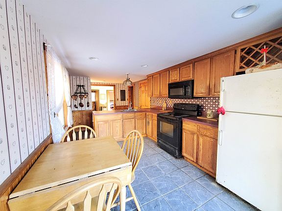 2 bedroom 1 bath home with a nice deck and pretty pond and field views. Large living room overlooking the backyard. Metal roof, vinyl siding, poured concrete basement with double walk-out doors. Nice open eat-in kitchen with pantry. Further up the road are two additional home sites with older mobile homes currently in place. Many mature perennials on site.