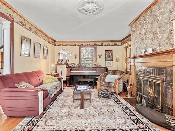 Upon entering this classic center hall colonial, you can't help but notice the beautiful architectural details, gleaming floors and abundant light in every room. The large sunlit foyer welcomes you and introduces you to the ample living room with fireplace and formal dining room. You will want to wander slowly and discover all of the beautful features this 6 bedroom, 3 and half bath home has to offer. Pocket doors, moldings, tiled fireplace, loads of windows and lots of room for everyone to enjoy. The first floor has a very traditional Colonial floor plan and flow. The second level boasts 4 bedrooms. The primary bedroom is a bright sanctuary with tiled fireplace and private bath. The third level surprises you with a full bath, large closet and two additional bedrooms. The basement is home to utilities, laundry, storage and a bar room that is rumored to have been a Speak Easy in this home's early days. The eat in kitchen leads to a large deck that overlooks a fenced yard chock full of shrubs, perennials and garden spots for entertaining and relaxing. Located within a ten minute walk to the elementary, middle and high schools. Additionally, the train, town and mall shopping, are all within walking distance. Come make this home yours.