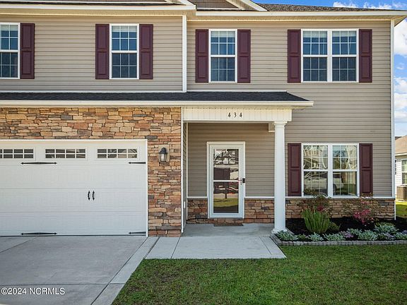 **SELLER IS OFFERING $5,000 USE AS YOU CHOOSE** Welcome to 434 Worsley Way, a meticulously well-maintained home nestled in the highly desirable Onslow Bay Subdivision. This spacious residence offers over 2,400 square feet of living space, featuring 4 bedrooms and 2.5 bathrooms. Downstairs, enjoy ample space with a den, dining room, and a large great room. The kitchen features granite counter tops, an island and a pantry. Upstairs, a generously sized loft area provides versatile space between the bedrooms, perfect for a playroom, home office, or entertainment hub. The primary owner's suite is a true oasis, boasting a luxurious garden tub, walk-in shower, and an expansive walk-in closet. Outside, the fenced backyard and screened-in patio provide ideal spaces for outdoor enjoyment and entertaining. Conveniently located outside city limits yet close to Camp LeJeune, shopping, and restaurants, residents enjoy the added benefit of NO CITY TAXES, making this property even more desirable. Whether you're seeking a spacious family home or a tranquil retreat away from the hustle and bustle, 434 Worsley Way offers the perfect blend of comfort and convenience.