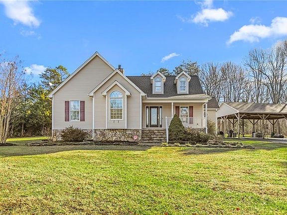 Nestled in the highly sought-after Southern Alamance area, this stunning property offers incredible privacy and tranquility. A long, winding driveway guides you to this beautiful 3 bedroom, 2.5 bath home. Where you're greeted by elegant hardwood floors and gorgeous vaulted ceilings upon entry. The spacious kitchen features a cozy sitting area and sleek granite countertops. The primary bedroom suite offers a separate shower and garden tub, and large walk-in closet. A large enclosed sunroom extends to an oversized patio and a peaceful backyard - ideal for relaxing or hosting gatherings. Outside, the property boasts a large barn with convenient lean-to's, offering ample storage. A 3-car covered parking area ensures that you have plenty of room for vehicles, guests, and more. Don't miss the opportunity to own this private and beautiful home!