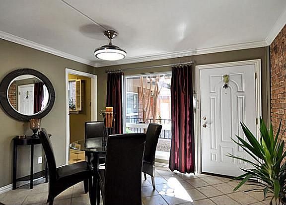 CLEAN and UPDATED condo on Cedar Springs! This one bedroom condo has no carpet and fresh paint and hardware throughout. Tucked inside the complex in a corner unit, this property features an entire exposed brick wall and modern ceiling fans that adds an urban hip flare. Close to Whole Foods and shopping, access to highways, Parkland hospital and Love Field, and nightlife. Lots of cabinet space in the kitchen for storage along with stainless steel appliances. Granite countertop with matching backsplash. Refrigerator included. Gated community includes pool and green areas. Condo includes washer and dryer in the HUGE primary closet. Book your appointment today! Parking space #8.