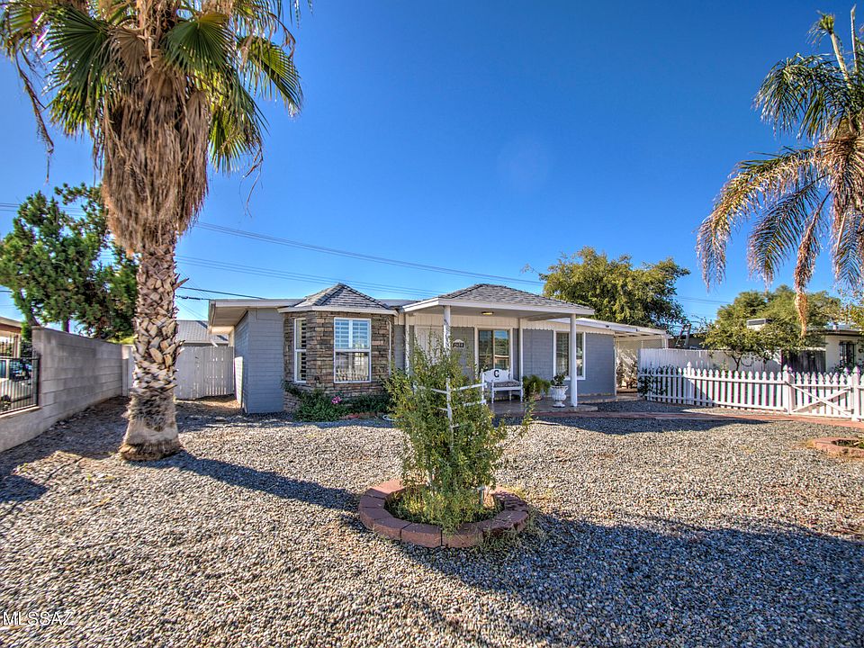 Come take a look at this charming home that features a Casita. It is move-in ready and in immaculate condition from ceiling to floor. Wood-like tile flooring throughout makes for an elegant look and easy clean up. Some of the great features include 3 spacious bedrooms and separate living & family rooms. Your new kitchen offers island with breakfast bar, granite countertops and backsplash, and plenty of cabinet storage space. Easy to maintain landscaping and a separate studio casita in the backyard. In the heart of Tucson you don't want to miss out on this gem. Hurry and come take a look while it's still available. You won't be disappointed.