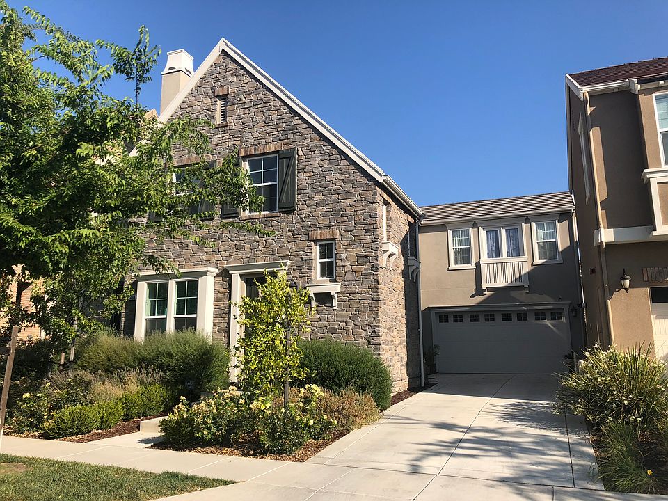 Convenient downstairs bedroom and half bath. Open concept kitchen to family room. The Chef's gourmet kitchen has a pantry, center island with breakfast bar, granite countertops, lots of cabinetry & stainless steel appliances including gas stove with four burners. Spacious, open family room with ceiling fan. Lots of light pours into this great room from all windows. Upstairs is the large master suite is privately located on the other side of the home and has a balcony facade. The spa-like master bathroom is spacious with standing shower, soaking tub, dual vanities and a large walk-in closet with organizers. Two spacious bedrooms with jack/jill bathroom and laundry room. The two car garage has tons of built in cabinetry making storage easy. The low maintenance backyard is landscaped with a large patio, gardening area and lots of room to relax on outdoor furniture.