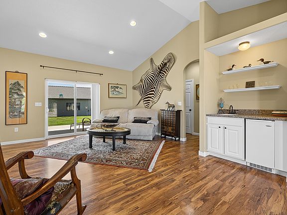 Listed by Shauna Sheets, KWBH, 605-545-5430. Meticulously maintained ZERO STAIR home in the desirable Elks Country Estates is ready for new owners! *The covered front stoop welcomes you into the comfortable living room with a conveneint wet bar, great natural light and an electric fireplace for style and warmth *9' ceilings throughout, plus vaulted ceilings in the living room *Nearby formal dining room for meals with two corner built-ins for storage *Spacious 'U' shaped kitchen with ample cabinet and counter space, a stand up pantry, and white and stainless steel appliances *Breakfast nook plus breakfast bar for convenient meal options *Smart floorplan with the private master suite on one end of the home, with a comfortable bedroom, walk in closet and an ensuite bathroom with walk in shower *2 bedrooms and 1 full bathroom on the other end of the home *Private laundry room with storage space and a utility sink *Attached 2-car garage is finished and has a pedestrian door to the back yard, plus a closet with access to the crawlspace with concrete slab under the home *Partially covered back patio with privacy fencing allows for easy entertaining *Tasteful landscaping and a well manicured lawn, maintained by a sprinkler system *Good curb appeal with a cementboard siding and tasteful brick accents. *A beautiful home near Elks Golf Course, with close proximity to main roads and easy access to medical facilities. **HOA covers snow removal and lawn care