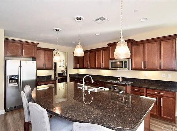 This Home is Finally Ready for Showings! Spacious Home with a Fantastic Open Floor-Plan. This Home boasts 5 Bedrooms and 4.5 Bathrooms. This home has 2 Master Suites each with their own private bathroom & spacious closet. Located on the 1st floor is a Master Bedroom with private bath. On the 2nd floor is the other Master Suite with spacious master bath including double vanity, walk-in shower and soaking tub. The remaining bedrooms are all spacious with custom paint and large closets. Upstairs is a Large Loft perfect to use as a kids playroom, media room or office. The main level offers a dining room, living room, family room and kitchen. The kitchen is equipped with beautiful cabinetry, stainless steel appliances, granite countertops and a large island with seating for 4. Off the kitchen is the living room with a beautiful fireplace and plenty of space for entertaining friends and family. Many upgrades include recessed lighting, wood laminate flooring and custom paint throughout. The private backyard has newly installed sod and no neighbors behind giving you privacy and Beautiful views of the hills and natural landscape. Nearby are Fantastic shopping centers, Wonderful eateries, Schools and Parks. This home is also central to many Freeways such as the 15 fwy and the 91 fwy. Your Dream Home Awaits!