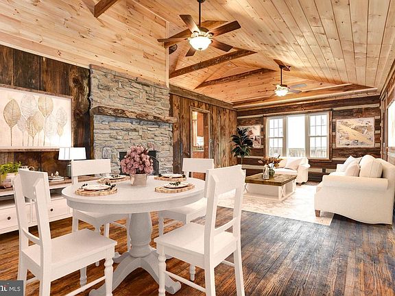 Custom updated Rancher ; Log home on 1.54 acres boasting hardwood floors, amazing wood walls, and soaring cathedral wood beamed ceilings; Spacious great room embellished with a stone profile fireplace and access to the wrap around deck; Living room highlighted with a cozy fireplace and lofty windows; Eat-in kitchen with a breakfast bar, ample cabinetry, sleek appliances, double oven, and upgraded countertops; Primary bedroom with fireplace and walk-in closet; Full bath offering Whirlpool jetted tub with remote controlled gas fireplace, double vanity, and heated toilet; Additional bedroom with built-in shelving conclude the main level; Expansive lower level with a newly sealed floor, full bath, and ready for finishing touches; The exterior features landscaped grounds, wrap around front porch with railings and gate, covered rear porch, rear fence with gate, bio dynamic garden with a bird watching area, blackberries, kiwi, asparagus, herb garden with mint and thyme, secure storage, firepit, covered gas direct connect to outdoor grill rotisserie, ample parking, and private expansive lot; Recent updates: Roof new 2020, siding 2010, driveway sealed 2020, attic redone and insulated and floored with pull down stairs 2020, lower level full bath 2020 fully renovated, septic pumped 2020, water treatment and water softener 2020 reverse osmosis, whole house generator 10 year powered by propane, whole house filtration system 2020, Kitchen remodel 2015, windows and doors 2010, shed 2010, main level full bath 2010 offering Whirlpool jetted double tub with Gas fireplace in bath with remote control 2 double vanity heated toilet and lite set and connecting for heated wipes, drain field updated 2004, radon system and new sump pump 2020, great room fireplace new stone front and new tongue and groove ceiling with decorator shelves, and more! A MUST SEE!