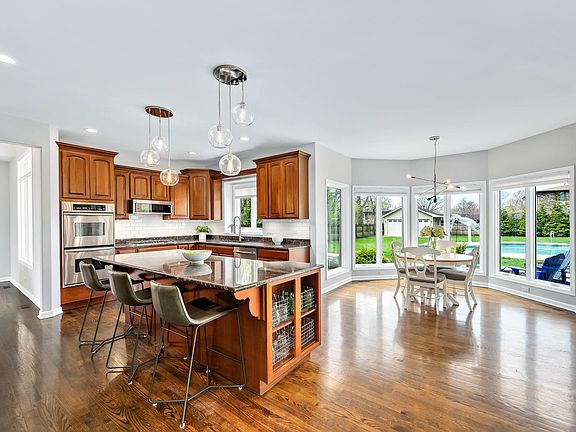 Experience the Epitome of Indoor & Outdoor Living in Downers Grove! Welcome to this exceptional custom-built home that defines luxury, comfort, and convenience. Nestled on a beautifully landscaped .56-acre lot, this property offers the ideal outdoor oasis-complete with a heated inground saltwater pool with spillover spa, expansive paver patio (2021), and plenty of green space to relax or entertain. Boasting over 5,100 square feet of total living space including the newly finished basement in 2021, this home is ideally located just blocks from local parks, the Fairview Metra BNSF train station, and within highly sought-after Downers Grove North schools-including Lester Elementary (only 3 blocks away!), Herrick Middle, and Downers Grove North High School. Step inside to discover a thoughtfully designed open floorplan, highlighted by soaring accent ceilings, a grand 2-story foyer with custom staircase, and a seamless flow from room to room. The spacious chef's kitchen features a double wall oven, updated dishwasher (2022) & refrigerator (2023), beautiful cabinetry, granite countertops, oversized breakfast bar with seating & ample storage, and a bump-out table eating area that overlooks the scenic backyard with walkout to the patio-perfect for entertaining or everyday enjoyment. The heart of the home continues into the sun-drenched family room with a wood-burning/gas start fireplace and custom wet bar, making it ideal for cozy nights or entertaining guests. Additional main level spaces include a bright formal dining room, dynamic living room, and private office with French doors. Upstairs, retreat to the oversized primary suite, complete with a sitting area/sunroom bump-out, dual closets, and a luxurious ensuite bathroom with whirlpool tub, shower, and private water closet. All bedrooms offer ensuite or jack-and-jill access for ultimate privacy and convenience. Bedrooms 2 & 3 have spacious closets and Jack-and-Jill access to the updated bathroom (2023) with double sink vanity and private shower room. Bedroom 4 includes a private ensuite updated bathroom (2023), spacious closet, and vaulted ceiling. Head downstairs to the incredible newly finished basement featuring a custom-designed wet bar with beverage refrigerator, kegerator, freezer, and waterfall quartz countertop, full bathroom with steam shower, workout room, recreation room with eating area bump out, and large storage area. Additional highlights include: Attached 3-car garage plus a detached 2-car storage shed , 4 Bedrooms, 4.5 Bathrooms , lawn irrigation sprinkler system, concrete pool converted to salt water with heater & professionally opened/closed yearly with WIFI enabled controls & several additional pool updates, updated laundry/mudroom off the garage with washer/dryer & sink (2020), numerous bathroom updates, new accent walls in family room & office, whole house painted interior ('19-'24) & exterior (2022), new carpet on the second floor (2019), new interior & exterior lighting, professionally landscaped yard, paver patio (2021), and so many more wonderful updates & features. This home has been meticulously maintained and thoughtfully updated. A one-of-a-kind layout designed for everyday comfort and unforgettable entertaining This is more than a home-it's a lifestyle. Welcome Home to Downers Grove.
