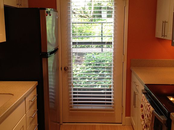 Updated condo in a beautiful park-like setting. Home has a brand new kitchen, new bamboo floors in hall, dining room, second bedroom and kitchen and lovely new carpet in master and living room. Nice warm and bright wall colors. Sunken living room creates tall ceilings and makes the space feel much larger. New kitchen has bright, clean cabinets, ambient under-cabinet lighting, beautiful corian style (zodiac) countertops and an under-mount sink with instant-hot water and a new and powerful garbage disposal. Brand new stainless microwave and stove. Washer and dryer included. Great view of forest setting from living room and master bedroom. See deer from the large covered back deck. Also has a front patio area. Baseboard heaters were replaced by current owner and comes with a programmable thermostat. Plenty indoor storage and has outdoor storage room with new shelving. Stays very cool in the summer, even on the hottest days. New light fixtures in most rooms. Electrical panel is brand new. Complex has a fantastic heated pool and lawn area.