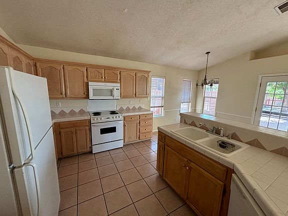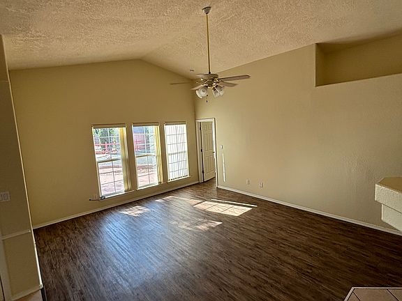 This charming residence offers three bedrooms and two bathrooms, including a spacious master bedroom with a well-organized closet featuring ample shelving. Enjoy the elegance of luxury vinyl plank flooring and the convenience of a dedicated laundry room with additional storage space. A brand-new refrigerator enhances the kitchen. Revel in breathtaking views of the Sandia Mountains and make the most of a large backyard perfect for outdoor activities. Located just moments from stores and restaurants on Highway 528, this home is ideally situated for easy access to all your daily needs. Move in and experience the perfect combination of style and practicality! Tenant responsible for all utilities. No smoking. 12 month lease minimum.