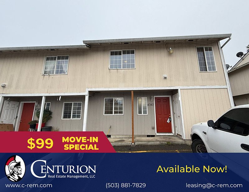 TERMS: * Rent: $1,675/mo * Deposit: $1,500(On Approved Credit) * Application Fee: $68/per adult 18+ * Tenancy: 1 Year Lease * Heat Type: Electric * Note: Non-Smoking Property PET POLICY: * Dog Allowed * Cat Allowed * 2 Pets Max Under 25lbs * $400 Additional Deposit per Pet * Pet Rent May Vary on Paw Score (starting at $45 up to $100) UTILITIES: * Included: Water/Sewer/Garbage * Tenant Paid: Tenant is Responsible for Electric, Gas (If Applicable), And all Other Utilities AMENITIES: * Refrigerator * Stove/Oven 2 STORY COMPLEX: LAUNDRY: * Laundry On-Site WATER TYPE: * City SEWAGE TYPE: * City LANDSCAPING: * Owner Responsibility PARKING: * Off-Street Parking PLEASE READ, $1,575 FOR THE FIRST 3 MONTHS AND $1,675 THEREAFTER FOR THE REMAINING TERM OF THE LEASE. FYI, YOU MUST STILL MAKE 3 TIMES THE REGULAR RENT OF $1,675 IN ORDER TO INCOME QUALIFY 1. Move-in Special ONLY applies to the current month. (IF APPLICABLE) 2. The application process normally takes 1-3 business days. 3. Must see the property physically before the deposit is made. 4. If you have a pet, ESA or you don't have a pet you must register at https crem.5. Apply to one property at a time. Pet Policy: Notice to all residents and applicants, everyone must complete the screening process. This is not only for pet and animal owners; it applies to residents and applicants who do not own pets. The pet policy includes caged animals and pets. You will not be moved into the unit without this completed. Prices are subject to change, we do not guarantee prices, items change, and errors occur. If there is a discrepancy between a price online and a price in the office, supervising property manager shall have the final say. *Due to overwhelming demand we may be unable to respond to your rental inquiry.* INTERESTED IN THIS PROPERTY? Properties are on a self-showing lockbox and each listing specifies how it is viewed. Feel free to drive by the property to check it out. "This information is deemed reliable, but not guaranteed." Centurion Real Estate Management, LLC 1365 Commercial St. SE Salem OR 97302